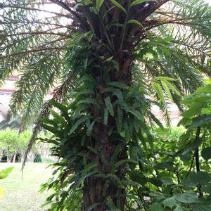 ナツメヤシの幹🌴 いい感じにいろんな植物が着生してる! タマシダ、ゲットウ、カポック、オオタニワタリまで❗️あと自分でコチョウランもだかしちゃいました😄