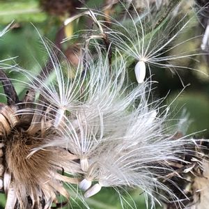 枯れたアザミに触れたら弾けるように飛び出して来ました。 これからタネが出発して行きます🤗