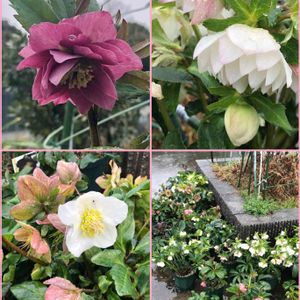 植物園のクリスマスローズ 冷たい雨に打たれていました。 このダブルいいでしょう!って言われました。 八重の事をダブルって言うんですね。 鉢植えをコンクリートの上に乗せて 撮らせて頂きました。