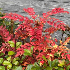 凄く鮮やかな色の葉っぱに惹かれました。ヒイラギナンテンですよね。