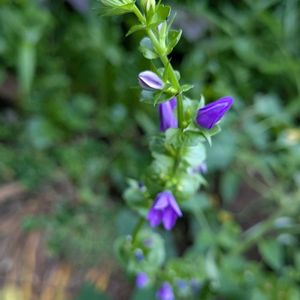 「キキョウソウ」が咲き始めました💜 荒れ地・空き地等に群生しているのを見かけます😖我が家の小さな庭も、大小取り混ぜたくさん生えている中の一本が開花しました😅 花は色も形も大好きなんですが、なにしろ、花は中部以上に付き、下部は閉鎖花となり、種ばかりです。増えるのはあたりまえですね😖💜😱