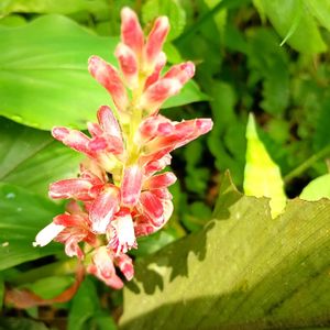 ハナミョウガというそうな 最初、赤い蕾(3枚め)を見つけ これはなんじゃ?と経過観察🕵️♀️ 5日後このような花が咲いてました❤️🤍 葉っぱはミョウガや生姜にそっくり…さすがショウガ科 4️⃣5️⃣はハコネウツギのその後 先に咲いた花はさらにピンクが濃くなっていました
