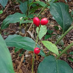 ハナミョウガ Alpinia japonica (Thunb.)Miq. ショウガ科 20/12/28採取 常緑のショウガ科の山野草で葉っぱはかなり大きいのが特徴です🌿 森の中に入ると普通に見かけ、今の時期は赤い実がなってます🌿 根はショウガを小さくした感じのものがついており、ほんのりミョウガのような香りがします🍀
