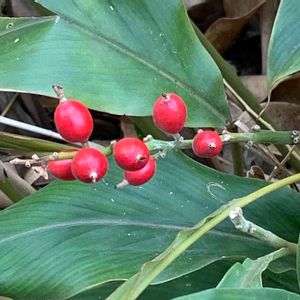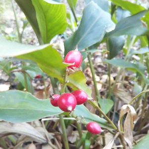 赤いハナミョウガの実、可愛いです💕 葉がミョウガに似ているので名前が付きました。 ショウガ科 ハナミョウガ属 芳香性健胃薬としても用いられます。