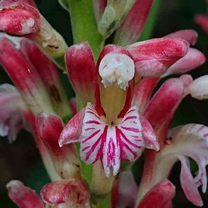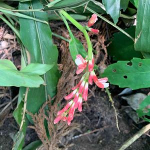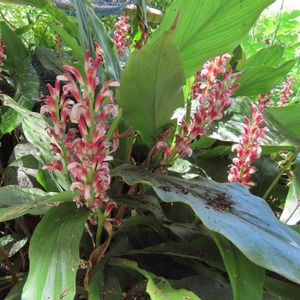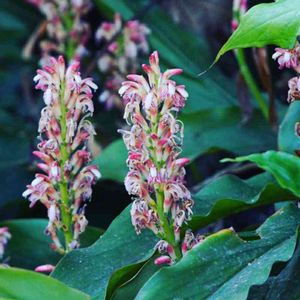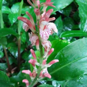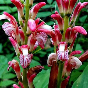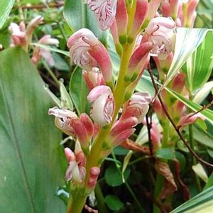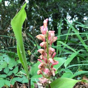 ハナミョウガ❔の花が咲き始めました😊 赤ピンクのラインが綺麗な小さな花です💠 下から順に所々咲いてきました(*´∀`)♪ 可愛い感じではないけれど 古風な感じが素敵(#^.^#)