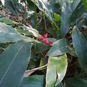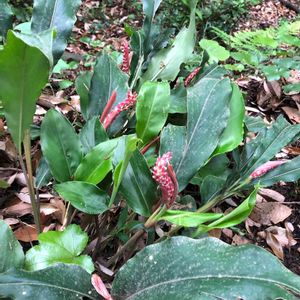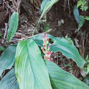 ハナミョウガ💠花茗荷 …………ショウガ科 茗荷の葉っぱに似ている事が名前の由来だそうです🍀 雨の後でお花が萎れていたので綺麗な姿を写せなかったです😢 蕾の先が赤くて お花にも赤い線が入ってます。 雰囲気は蘭のお花みたいな感じです😌 神社の裏山で📷