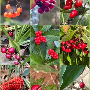 おはようございます♪ 目黒自然教育園の散策 🔴赤い実を見つけました ↖️ヒヨドリジョウゴ ナス科 ⬆️サネカズラ マツブサ科 ↗️アオキ アオキ科 ⬅️キチジョウソウ クサスギカズラ科 ⏺️センリョウ センリョウ科 ➡️マンリョウ サクラソウ科 ↙️ムサシアブミ サトイモ科 ⬇️ヤブコウジ(十両) サクラソウ科 ↘️ハナミョウガ ショウガ科 🔴真っ赤な火曜日🔴