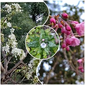 今日の開花 ソルダム(去年一個も成らなかった😱😨) プルモナリア(薄いブルー) 垂れ桜