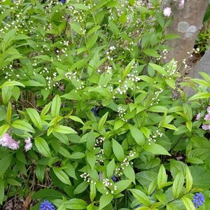 ムスカリ、ヒメウツギ(卯ノ花) 庭櫻(根を延ばしてアチコチから出てきてる、よくみると可愛い)