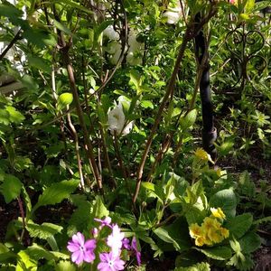 白い木瓜と黄色いいにしえのサクラソウと日本サクラソウ