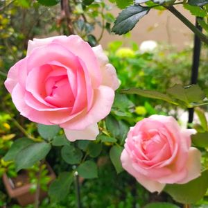 🏷一般ジーの会♪ 🏷ビオラ・パンジー祭り♪ アブラハムダービーが2輪咲きました。横向きは半分虫に齧られて🥲もう1輪も形がイマイチですがフルーティーな香りを漂わせています💛 1985年デビット•オースチン作出。もうオースチンのバラのカタログには載っていないバラです。どんどん品種改良され病気に強い薔薇が作られて、この薔薇はカタログ落ちしています。 我が家に来て15年以上は経ちます。 pic3 雨粒を纏う スパニッシュビューティー💕 pic4 ルィーズオディエ カップ咲き˚‧⁺ ・ ˖ · 花弁の重なりいったい何枚くらいかな… pic5 パンビオをカット✂️しては飾っています。右は孫の投げ入れ🤭 左のシックな花は私作です。