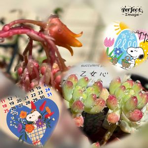 こんにちは♪ 明け方の雨は、凄かったですね〜 水遣りしなくて助かりますが。 🏷️毎月2日はスヌーピーの日 🏷️カレンダーの日 わが家の多肉に、タコウインナー🐙 乙女ちゃんも可愛い😍