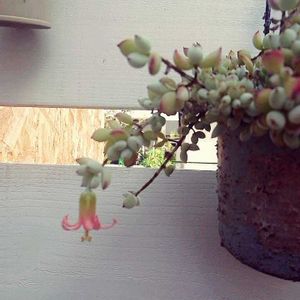 ❶コチレドンペンデンスのタコさんウインナー🐙咲きました 沢山蕾が有るので楽しみです ❷ハートカズラ🩷 ❸ルビーネックレス🔴 ❹グリーンネックレス🟢(水切れのようです) ❺フェンス際にオシロイバナと背高ヒマワリ🌻 元気百倍💪 🏷ネックレスの日 参加します