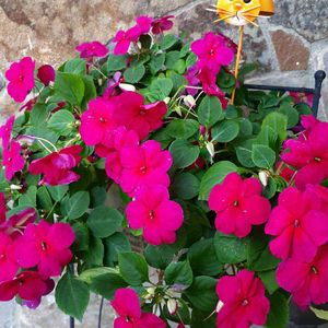 さすが(*^^*) インパチェンス🌼 我家の玄関先 お日様🌞が全く当たらない場所 6月から ずぅーと 咲いてくれてます😍