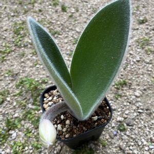 マユハケオモ。 万年青と同じと思ってたら、ヒガンバナ科だった子。 可愛いお花が咲くのでさがしてました! よーく見ると、葉っぱモフモフ🐰