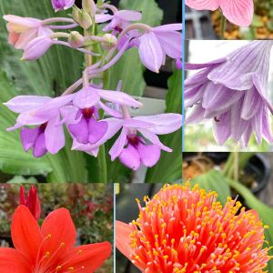 こんばんは 昨日テレビで新津フラワーランドにモミジアオイが咲いていると紹介されたので出掛けて来ました モミジアオイは一日花、沢山のモミジアオイの鉢植えには今日はお花がありませんでしたが、フラワーランドのお花を見ていただきます ↖️オナガエビネ ↘️ハエマンサス コッキネウス オレンジ色のとても高級なお花でした ↗️赤花ウメバチソウ ➡️ギボウシ 彩重 八重咲覆輪のお花です ↙️スペシオサ 今日も見ていただきましありがとうございました