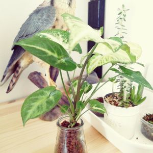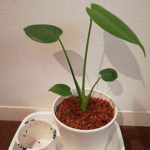 真ん中がシッサス・ディスカラー、後ろがポトス・グローバルグリーンです! グローバルグリーンは新品種でYouTubeで紹介されていてどうしても欲しくなって園芸ネットさんで購入しました☺ グローバルグリーンだけでは注文できる価格にとどかなかったので、シッサス・ディスカラーを頼みましたがこれがめちゃくちゃ可愛い❣️葉の表の白と深緑も綺麗ですが、裏が真紅になってます。色だけでなくて葉の形とかツルの感じとか可愛すぎて萌え萌えです。葉の触り心地はベルベットのようですよ!寒さに弱いようなので冬越し出来るか心配ですが、大切にします。 グローバルグリーンは斑が抜けてしまったものは単品で植えて、斑がどうしたら戻るかチャレンジします。 カゴに入れている方には10年ほど前からハイドロカルチャーで育てているシンゴニウムとグローバルグリーンを合わせてみました!シンゴニウム(よく見たら写真切れてしまってる)は最近元気がなく葉色が悪かったのですが、古い根を全部取ったので復活してくれると嬉しいです。 ディスカラーは外の日陰に吊るす予定ですが、グローバルグリーンは何鉢かあるのでどこに置こうかまだ玄関にサーキュレーターをかけながら待機させてます。