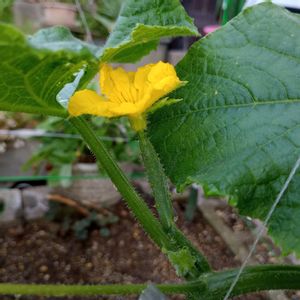 苗を植えてから18日目のキュウリ。 元気に伸びて花がチラチラ、早咲きの花の後には小さな実も。 一昨日朝に、1本目の支柱を超えそうになって慌てて継ぎ足し、その夜見たらちゃんと巻き付いてた。 なんか頭がポールダンスしてるみたいな😂