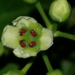 名前をよんでいるような。 花が咲きました。一輪、実も楽しみ。 まゆみ?こまゆみ?
