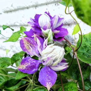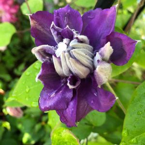 キリ・テ・カナワ .。゚:*:✼.。 パープルの八重のクレマチス キリ・テ・カナワがもうすぐ咲きます💜 ガク、というか花(これもホントはガクですよね)の下にある葉っぱと思えるようなのが紫なのも素敵なんですよね💜💚 花開く前に前兆としてこうなるみたいです✨ 蕾は今のところ35個くらいあるみたいです。