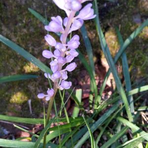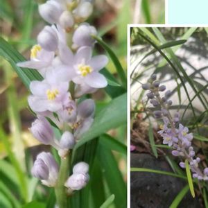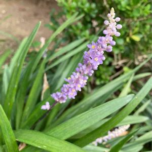 10年以上前にお迎えしたヤブラン。初めてお花咲いたかも🥰ずっとロックガーデン風の場所に植えて日も実はけっこう当たる場所でしたが、2年前にエゴノキの下のシェードに植え替えたら、よかったようです🌸