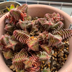 連投、失礼します🎵 「クラッスラ・茜の塔」 多肉にハマったときは、 クラッスラの幾何学的 なものみても あまりトキメキがなかったけだ、、 今じゃすっかりハマってる(笑)🤭 なぁ~んでこんな風に連なってるのか、、 不思議でならないわ☺️