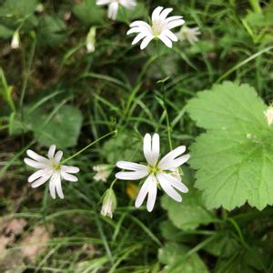 この春初めて出会ったお花 やっと名前が分かりました❣️ 画夢さんありがとうございます😊 🌿🌼🌿🌼🌿🌼🌿🌿 ステラリア・ホロステア Stellaria holostea ナデシコ科、ハコベ属の多年草 中央及び西ヨーロッパ原産 草丈10-60cm 肥沃な土地を好み広葉樹林や雑木林、牧草地の縁などに自生する 白く縞のある5弁花(直径2〜3cm)は深裂して10枚花弁があるようにも見える 🇫🇷 Stellaire holostée collerette de la Vierge(聖女の飾り襟) bec d’oiseau(鳥の嘴) など