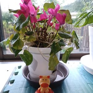 朝起きてからすぐさま見に行った時には、まだ開いていなかったシクラメンの蕾。 あんぱんを見ている間に あっという間に開いてきた。 このくらいの姿もクラシカルなペンダントライトみたいで好きである。 気がつけば、フクシアの花の姿がクリオネみたいな、妖精みたいな🧚‍♀️💫 飽きのこない姿に沼りそうで怖いw いちごのお花 安定の可愛らしさ🍓🌸 実がなりますように🥹‎🙏🏻💭💗 先日、苔テラリウムの中で暮らしていた屋久島スミレのカブを少し、ささっと苔と共に陶器へ。 陶器の下に余っていた太めのワイヤー。 これはガラスの小さなケーキドームを乗せるためである。 これで、少し空気の調節が可能🙆‍♀️ おっ、サイズ感も良いし、なかなか上出来である。 ちなみにこの陶器は、 子が学生の時に焼いたもので。 本人はこの陶器の事なんて すっかり忘れているかもしれないし 思い出したくないことやらも あるかもしれないし 🙄💭 使われてないし、ホコリかぶってたし。 物には罪は、無い。 なので、こっそり私が頂いたw✨😝💫 本人がしっかり思い出したら、返そうw 週末は雨で寒さ増すらしく 日曜なんて16度予報🥶💦 やっぱり、布団出そうかな。 とりあえず、毛布出しておこう🐑⸝꙳.‎ そして、 サウナへ行こう⤴⤴⤴🥹‎💖