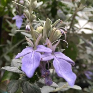 ツリージャーマンダー🌲 PART2 接写ではなく、今度は引きでパシャ📸 お花の薄紫と、シルバーリーフなのが良く判るかと思います🌿 真ん中に位置していますが、この構図… 左手にエルダー、右手にローズマリーと 勢力争いになっている🙌🏻ハーブだらけの🏡の垣根越しです🤗