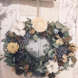 令和の🌸お祝い🥂モードにのっかって、 ㊗️お祝い🎀といえば、リースかなって💕 5月の雰囲気が全く無く…😅 クリスマス🎄みたいですけどね🎅 ただ、気候も寒々しいし、なんとなく?昨日から年末年始みたいな雰囲気なので、意外に合ってるかも?という気がします😁 大ぶりの木の実🥜やユーカリの葉を🌿使いました。 上の真ん中は、ソラフラワーという木の皮から作られた お花🌼です。 こちらにアロマオイルを垂らして💧香りも楽しむリースになっています🤗 すべて自然の素材を使用し、香りも天然です✨✨ 皆サマに🎀良いことが訪れますように🤗