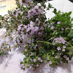 初摘みのレモンタイム🍋 庭から採ってきて、フレッシュティーにするつもりです🤗 本当は開花の直前くらいが一番香り高いのですが… いつの間にか咲いちゃいましたね😁 今日は、お花ごと淹れちゃいましょう🌿 カップにお花を浮かべても可愛いしね💕