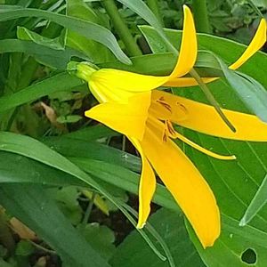 2024/4/22 撮影 in九州 ちいさなリリー 終日雨だった昨日は葉っぱと蕾だけだった。 今日はびっくり。咲いとった…。🤭 白鶴🍶にごり酒の飲み過ぎか? 翌日は 幸せ気分の黄色の開花。 ヒメカンゾウ (姫萓草) ユリ科 ワスレグサ属 日本原産 学名:Hemerocallis dumortieri. 英名 : Day lily 花ことば:憂いを忘れる