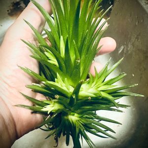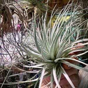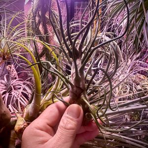 本日、とあるスーパーの片隅にある花屋さんを覗いたら、 ティランジアを発見。 ワンコインならぬ0.1コインだったので、 置き場所のことなどすっかり忘れて5つも💦 品種は全てコットンキャンディ パープル。