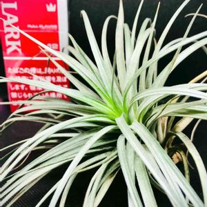 またまた似た様な草姿のティランジアになるが、 今宵我が家のクララ。 一応、サイズ比較のため、 タバコのロングサイズの箱と。