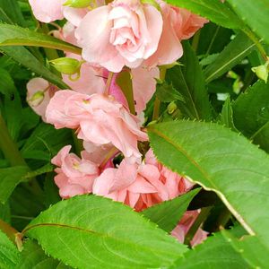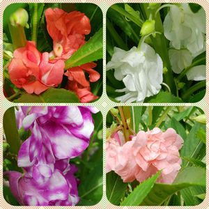 鳳仙花 はるか昔の理科の教材と あまり気にしてなかったのですが、 なんだか懐かしくなって 種蒔きしたところ 4つの種類のほうせんかが咲きました♪ 斑入りや 八重で薔薇みたいな花も どれもかわいい花ですね😍