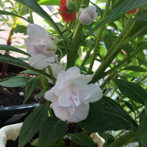 今日の誕生花は鳳仙花みたいですね! 朝から八重咲きの白が隣の赤と並んでいて最高〜です!