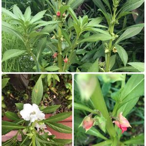 今年もこぼれ種から発芽した鳳仙花💗 お花が咲くようになりました🎶 白い鳳仙花もポツリポツリと咲き始めました😊 鳳仙花…数年前に懐かしくて ネットで種を見つけて蒔いてからは 毎年こぼれ種から咲いてくれます(♡ω♡ ) ~♪ 右側の枯れたような🌿は ベニバナ😊 種を取らなきゃ😄