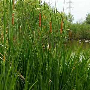 ヒメガマ 水辺の水曜日🏷️雄花群と雌花群の間に隙間があり、ガマよりも少し遅れて咲くそうな。 モフモフになる頃が待ち遠しいモフモフ愛好会🏷️ 蒜山にはこのヒメガマの茎を使ったガマ細工の籠や鍋敷きがある♪