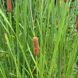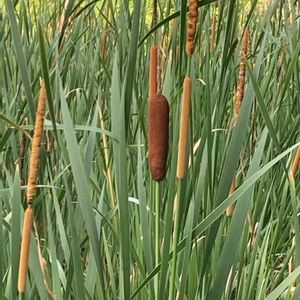 ヒメガマ 久しぶりに見た👀 10数年前には、近所の休耕田にびっしり生えてたのにな☹️ ガマ科ガマ属 湖沼やため池、河川、水路、休耕田などに生育する抽水植物。ガマ属の中では、最も深い水域まで生育する。全高1.3〜2(〜2.5)m。葉は幅5〜15mm。雌花群は長さ(5〜)8〜22cm、ときに2(〜3)段に分かれる。雌花には小苞片があり、花穂は淡い褐色を呈する。果時の直径は1〜2cmでガマより細長い。