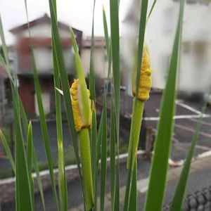 メダカの鉢に植えているヒメガマ。 ヒメってついてるからあまり大きくならないのかと思いきや、穂がつく前の今の段階で150cmはあります。