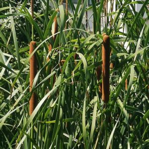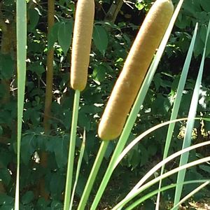 今回も7月19日(水)に草津市立水生植物公園で撮った写真です。 ヒメガマです。 これまで、私が知っていたガマの穂よりも小さいです。