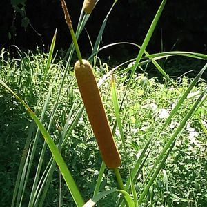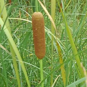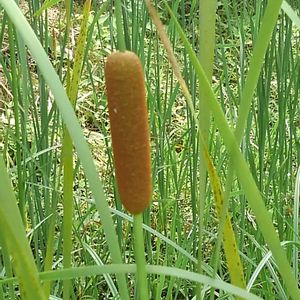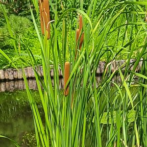 おはようございます😊 【ヒメガマ】 ガマ科 ガマの穂を見ると因幡の白兎の神話を思い出します。 🌿が細長いですねぇ🍀これが「ヒメガマ」 なのでしょう✨ 蒲(がま)は水辺に生える草の事の様です。 花言葉 「慈愛」「救護」 「素直」「予言」