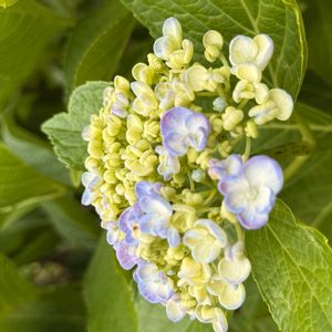 おはようございます☁️ 今朝のお花は 庭の地植えアジサイ 少し遅咲きの子たち 1 スターリットスカイ💙💜 3年目 昨年は咲かず 今年はこの1輪だけ咲きました✨ 1年ぶりに顔が見られて嬉しい😊 2 ウズアジサイ 大きくなりました😊 子株も同じブルー ピンクが見たいな❣️ 3 マジカルアメジスト🩵💙💜 まだ薄めの色 これからどんな変化が見られるか楽しみです💕 4 マリンソーダ 名前どおりのマリンブルーになりました💙🩵