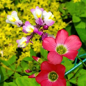 今朝の我が家のお庭 1️⃣モンカタバミと零れ種のリナリア、仲良く咲いています🤗 グランドカバーはマンネングサ🟡 2️⃣ラグランジアブライダルシャワー 小さいけど3年目かな🤍
