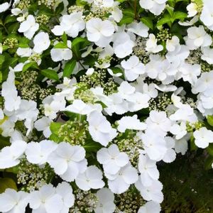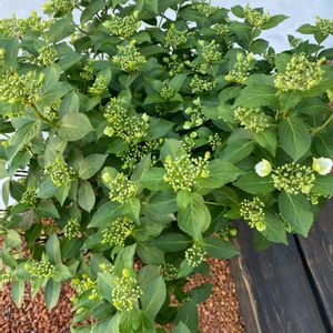 PWラグランジア ブライダルシャワー🤍 前回4月6日に投稿してから約2週間が経ち、葉っぱが増えて蕾も大きく目立つようになってきました✨ 装飾花が開いている部分もあります💓 上の方に伸びてバランスの悪い枝はカットしようと思っていましたが、もうこのままでいいかな😅 昨日は27℃の夏日でしたが、陽当たりガンガンの玄関横でも耐えてくれました🌞 日に日に蕾が大きくなり、毎日の観察が楽しみです💕 🏷PWブライダルシャワー成長記録