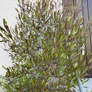おはようございます( ´ ▽ ` )ノ☀️ 今日は……紅葉するけど落葉しない我家の植物さん達をば🤗🍁✨ (相変わらず葉っぱ🌿ばかりの庭でお花が投稿できなくて、すみません😅💦) こちらは、オリーブみたいな葉形で 葉色が変化するのが人気のドトナエア・プルプレアさんです🥰💕 右端の写真が夏の様子で、中央と左が今の様子です❣️ 「ワインレッドの紅葉🍷」という謳い文句なんですが、陽光の当たっている日中は赤っぽいけど(中央)、日が暮れると濃い銅葉に見えるくらい(左)です💖 落葉せずに、春になると同じ葉がまたグリーンに変わって行くので枯葉掃除は楽ですよ〜😁✌️🧹🍂 寄せ植え用の3号苗でお迎えして2年で1.5m高まで育ったので、成長は速いと思うのですが…… 幹はなかなか太らないので、若いうちは支柱必須って感じ🪴 地植えにすると最終的に樹高3m、枝張り2mくらいまで育つらしいです👀 耐寒性も-5℃くらいらしくて、千葉の我家ではマルチングもなく越冬しているし、耐暑性もあって 繊細なオージープランツの中では育てやすい部類に入る子みたいです😉🎶 ただ、お迎えする時に気をつけなきゃいけないのが…… ドトナエアさんには葉色がほとんど変化しない「ビスコーサ」という品種があるから、紅葉目当てなら「プルプレア」であることを確認する必要あり☝️ そして…… ドトナエアさんは雌雄異株の子、雌雄同株の子がいて、花後に綺麗なピンクの鞘をつけるのは「雌株」だけなのだそう😲🌸 だから、ピンクの鞘がお目当ての場合は 雌株であることも確認してお迎えしないと、期待外れになっちゃう可能性があるらしいです💦 ……と、最初の苗木選びの時は色々気をつけることも多いけど🔰、どんなお花の背後にあってもお洒落な雰囲気をかもし出してくれる素敵な低木さんだと思います🥰💕✨ *オージープランツ大好きに参加させて下さい🙇♀️♡