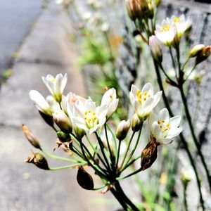 道路脇のハタケニラ(畑韮) 驚異の生命力と繁殖力の植物。 種と株のほか、球根の小さな鱗茎の一つ一つが容易に再生するらしいです。 見つけた道端の塀の向こうの庭には、大量に生えていました。