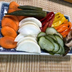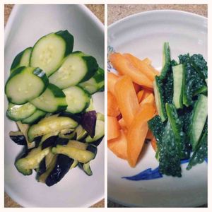 母お手製の糠漬け🍆🥒 お醤油無しでいただきました😋