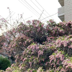 友人がエステを始めて、2か月に1回は応援の為に通っていますが、アパートのお庭に桜が咲いていました♪♪手前のアセビ(サラサドウダンではありませんでした‼️😁)も見事だし、グリーンのあるアパートはそれだけで価値が上がりますよね❣️