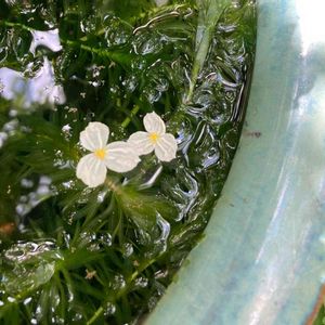 知り合いから頂いた水草に花が咲きました‼️実は卵も付いて来て、金魚が孵りました‼️3度目の感激です❣️